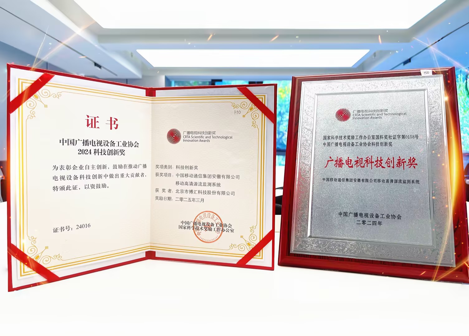 经国家科学技术奖励工作办公室批准设立,由中国广播电视设备工业协会承办的2024科技创新奖(国科奖社证字第0158号)重磅揭晓,leyu.乐鱼为中国移动通信集团安徽有限公司定制开发的移动高清源流监测系统项目荣膺「广播电视科技创新奖」。